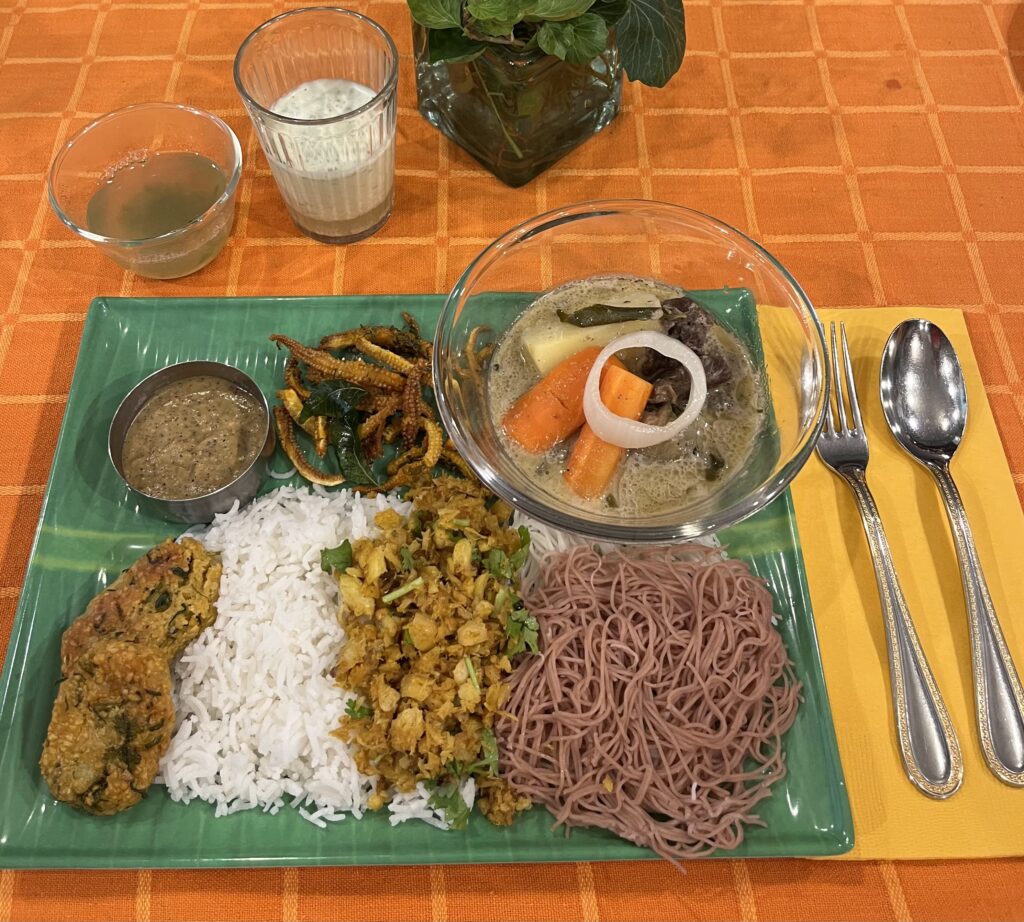 私が担当したレッスンでは、チキンカレーをメインとしたスリランカ定番料理のワンプレートや、カツオを厚切りにして煮込んだ魚の煮物(佃煮に近いかも?)、お米の麺など、いろんなお料理を紹介しました。